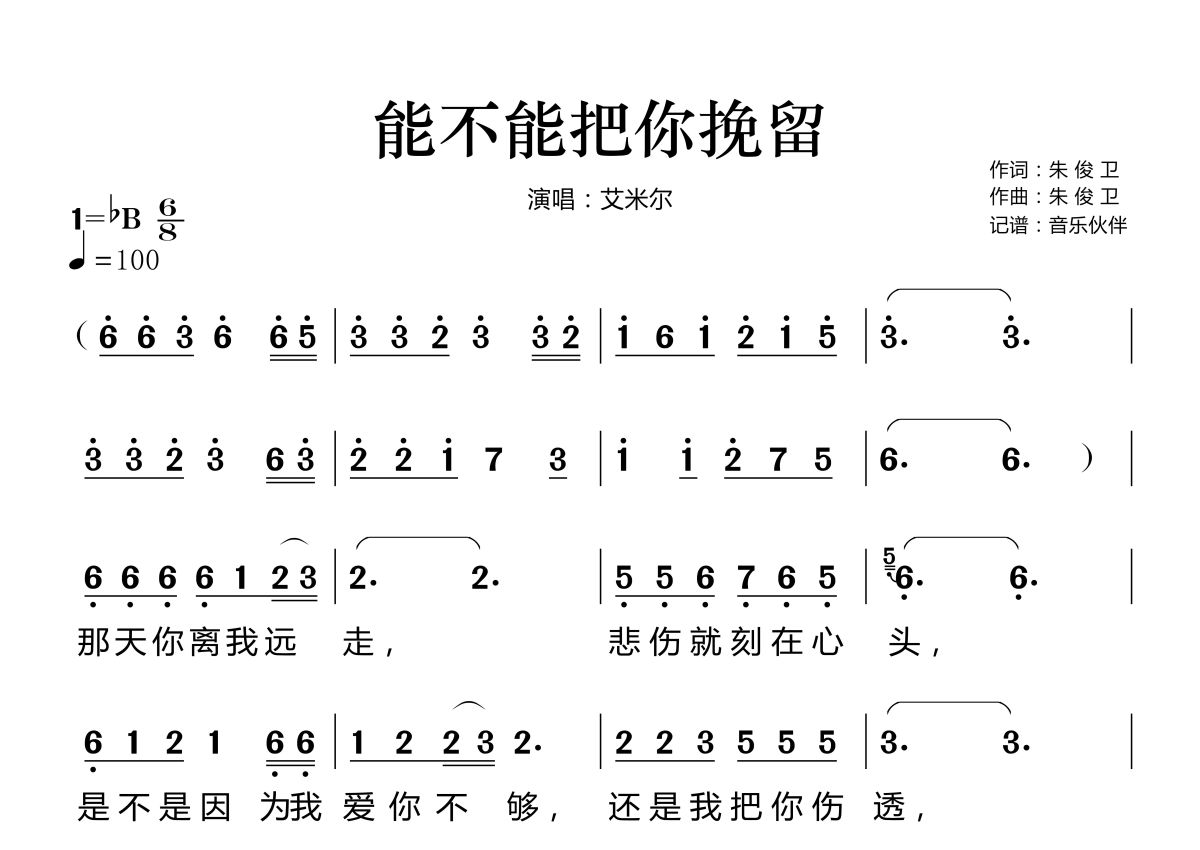 《能不能把你挽留》是艾米尔演唱的一首歌曲,这份简谱共有两张高清图谱,图谱由 @音乐伙伴 编配上传。