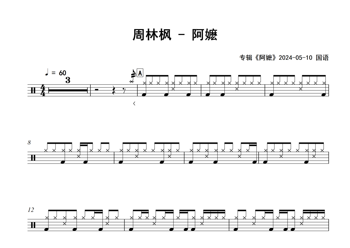 周林枫《阿嬷》架子鼓谱 - 专辑版