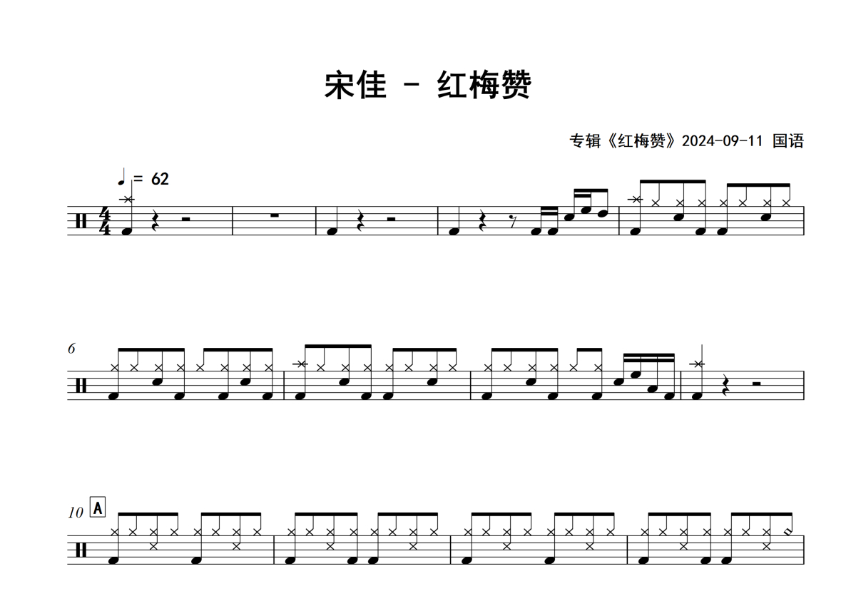 宋佳《红梅赞》架子鼓谱 - 专辑版