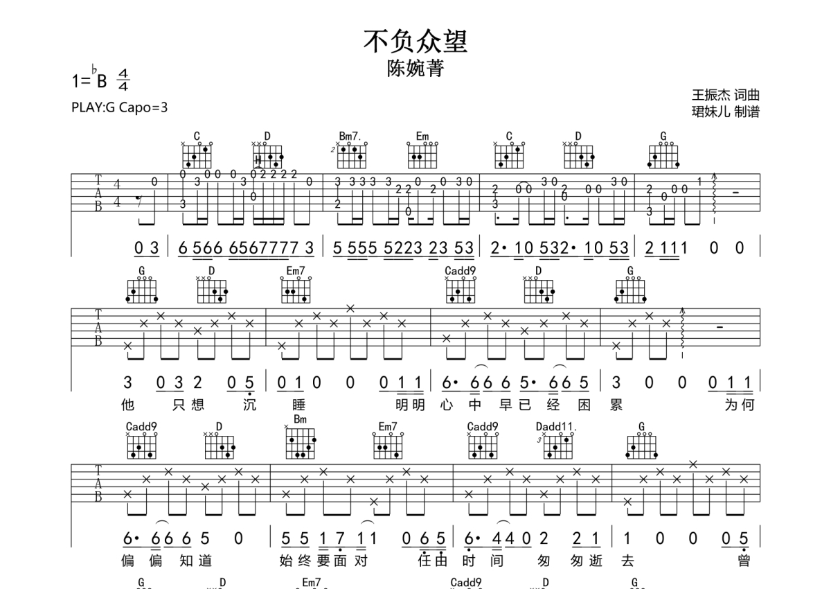 《不负众望》吉他谱 - 陈婉菁 - G调弹唱六线谱