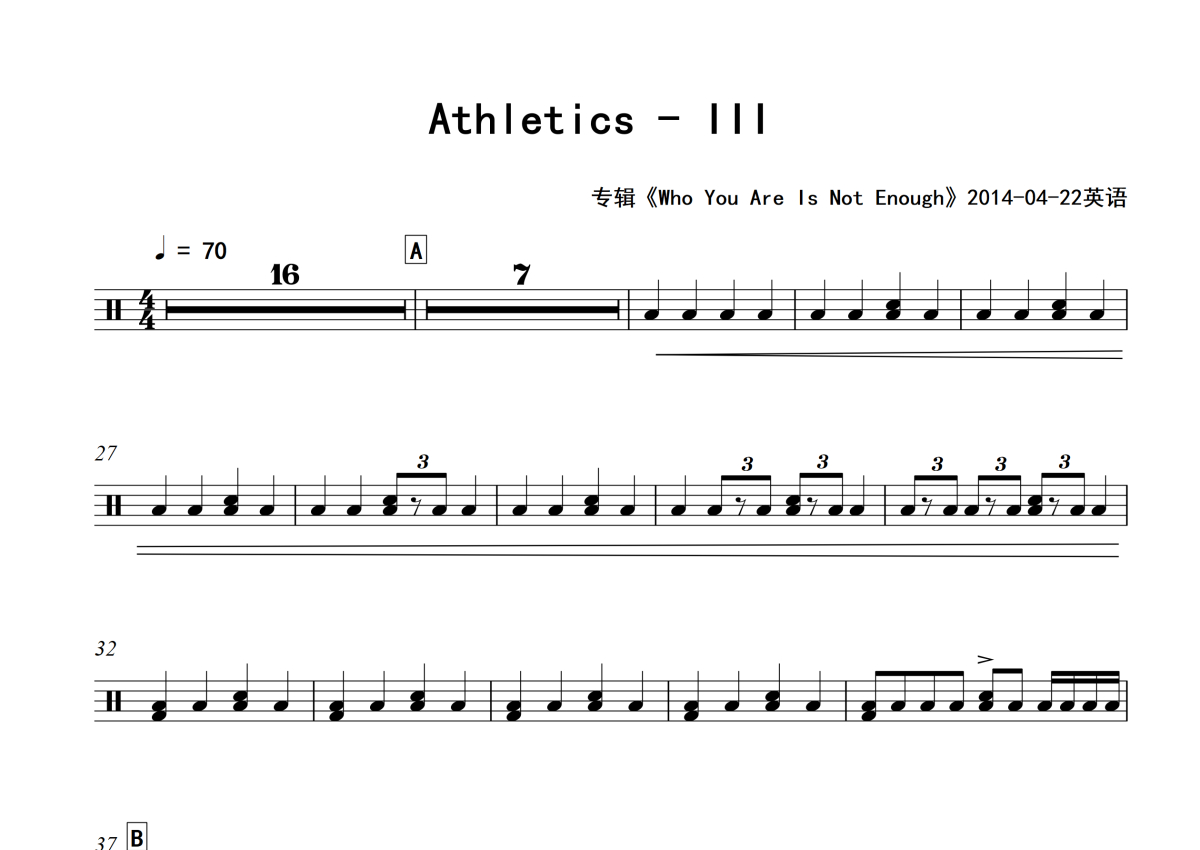 Athletics《III》架子鼓谱 - 专辑版