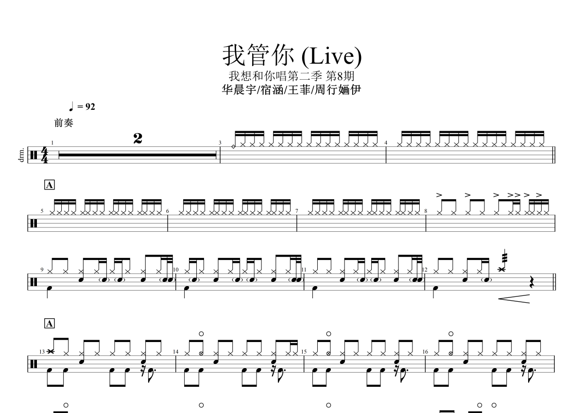 华晨宇/宿涵/王菲《我管你(live)》架子鼓谱
