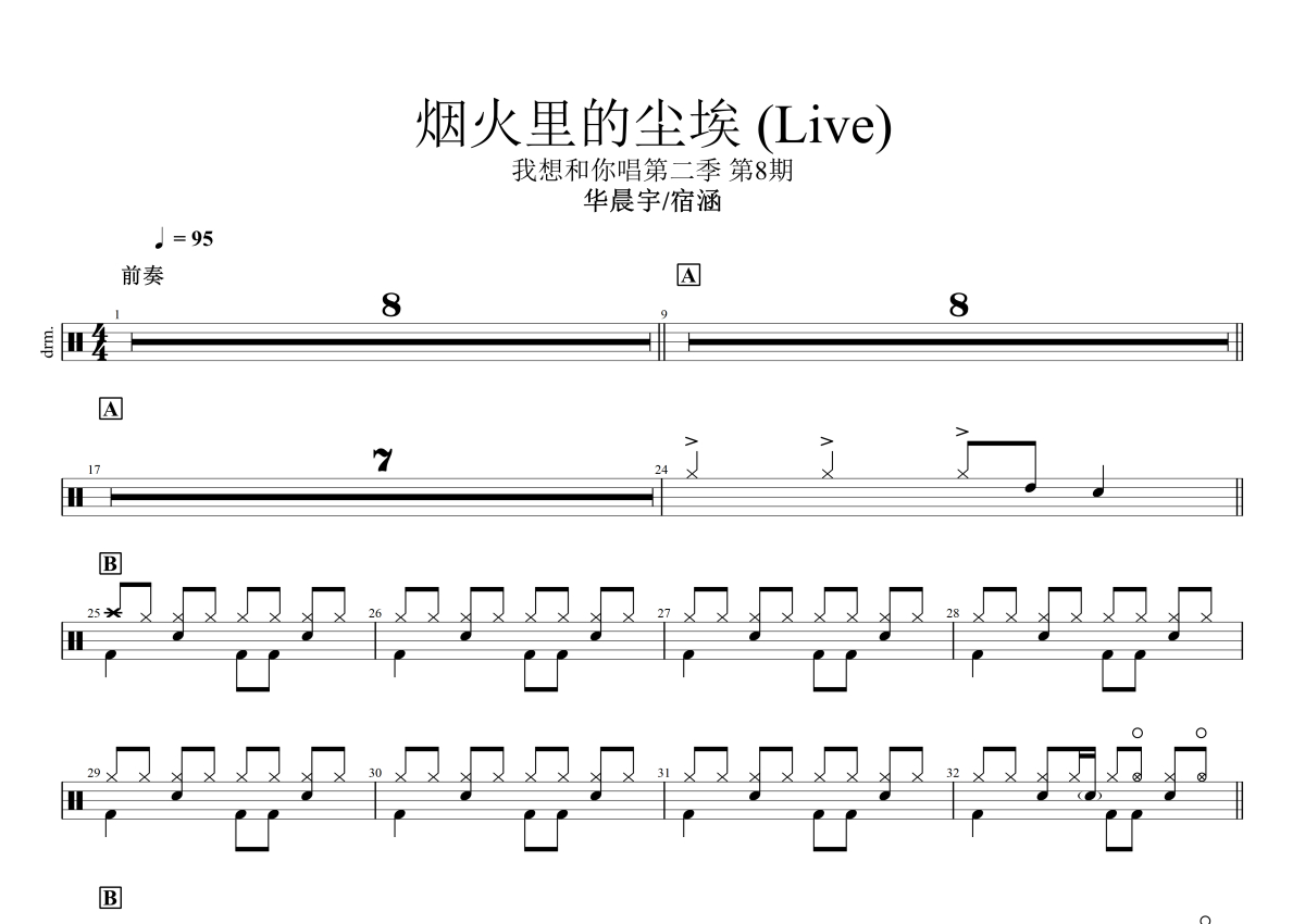 华晨宇/宿涵《烟火里的尘埃》架子鼓谱 - (Live)