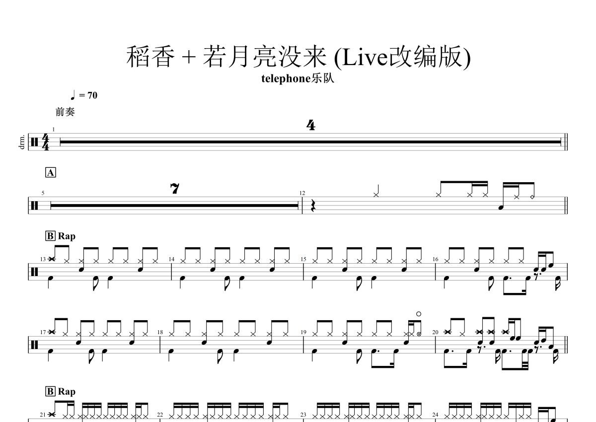 Telephone乐队《稻香+若月亮没来》架子鼓谱