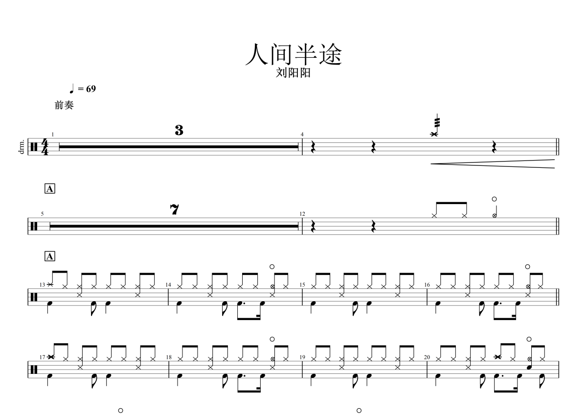 刘阳阳《人间半途》架子鼓谱