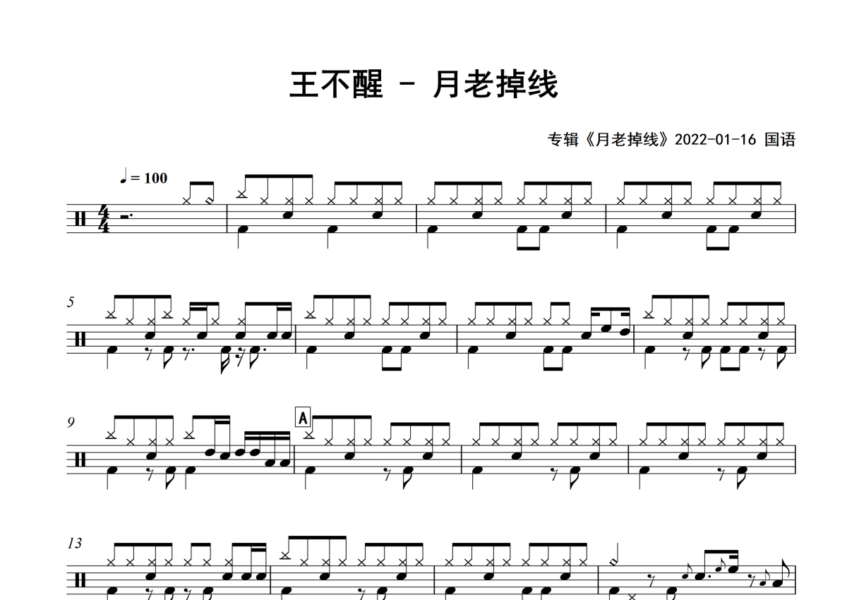 王不醒《月老掉线》架子鼓谱 - 专辑版