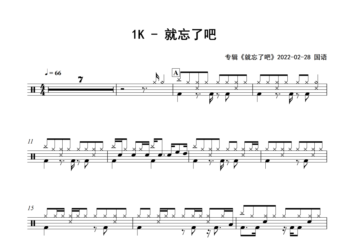 1K《就忘了吧》架子鼓谱 - 专辑版