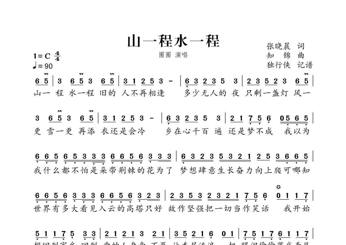 山一程水一程简谱 - 圈圈演唱