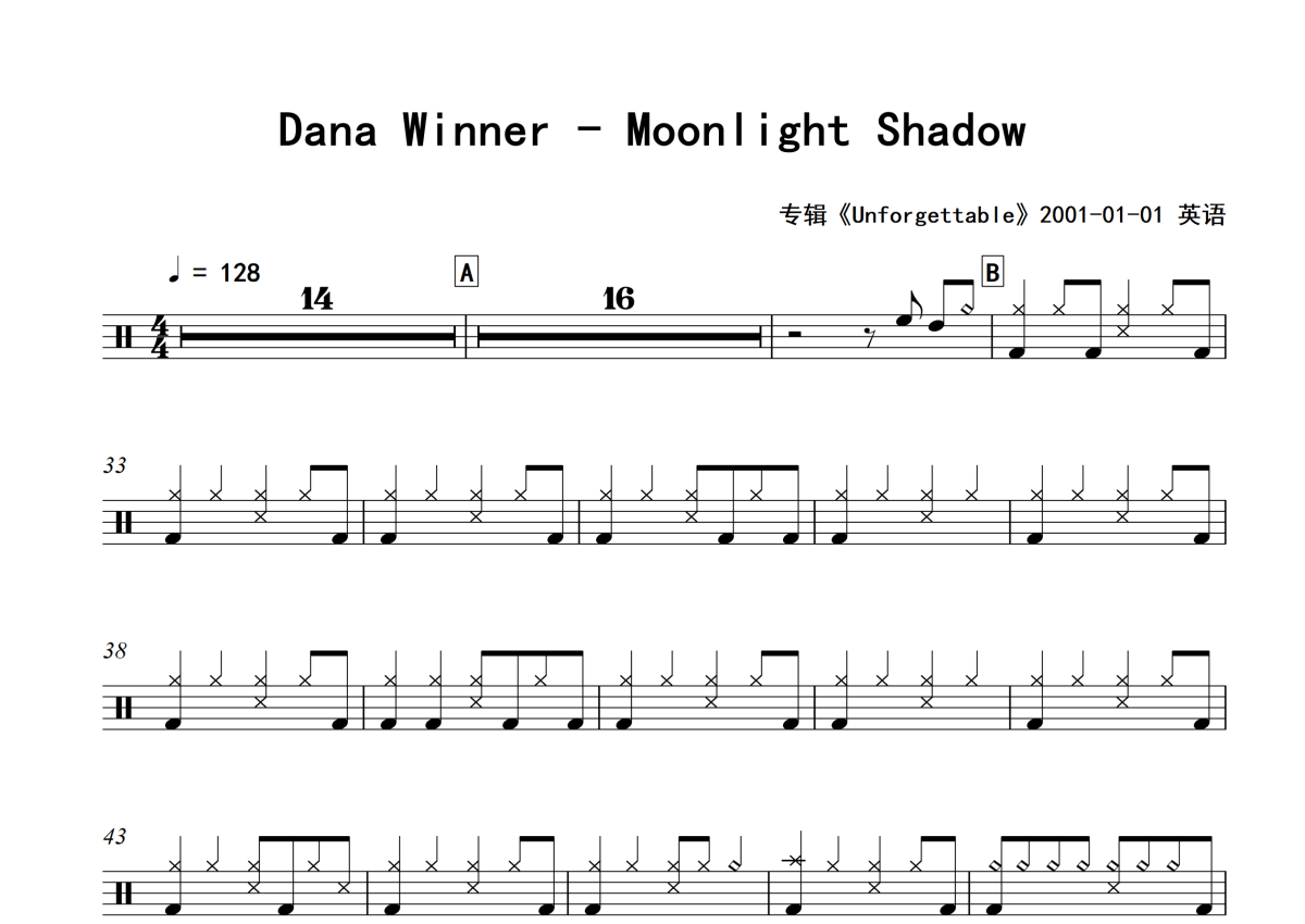Dana Winner《Moonlight Shadow》架子鼓谱 - 编配版