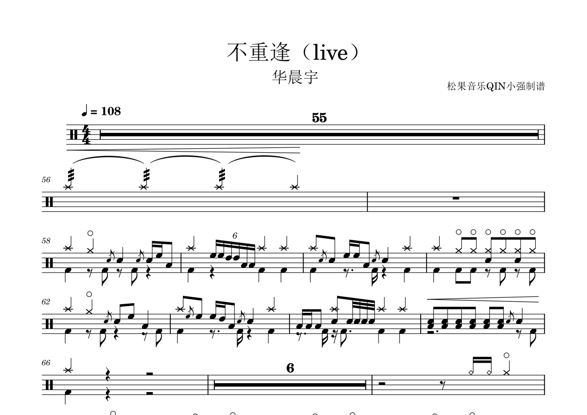 华晨宇《不重逢(live)》架子鼓谱