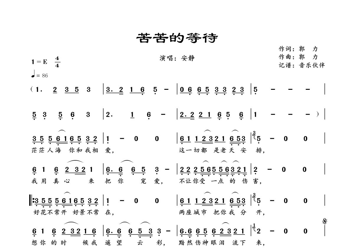 苦苦的等待简谱 - 安静演唱