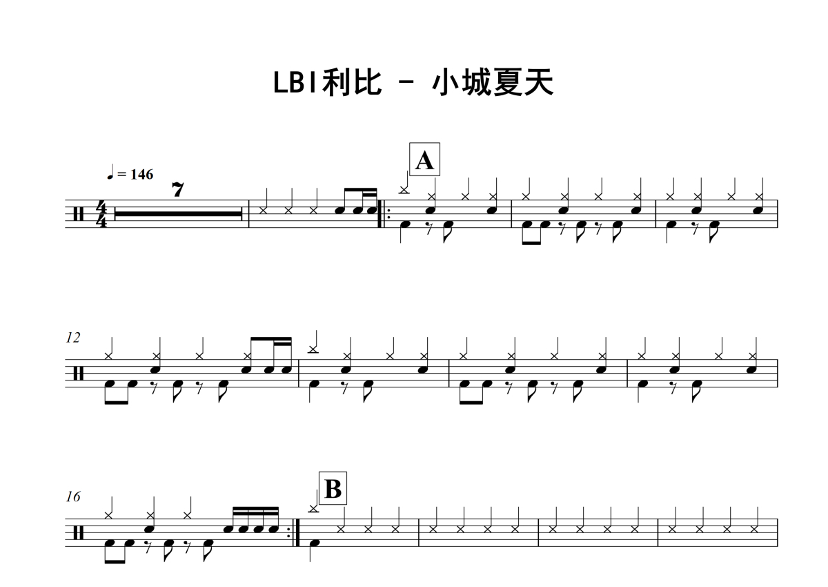 《小城夏天》是LBI利比演唱的一首歌曲,这份架子鼓谱共有两张高清图谱,图谱由 @积极处世 编配上传,图谱使用五线谱编配,使用这份小城夏天架子鼓谱,你将能够轻松地敲打出这首LBI利比的小城夏天,快来尝试吧。
