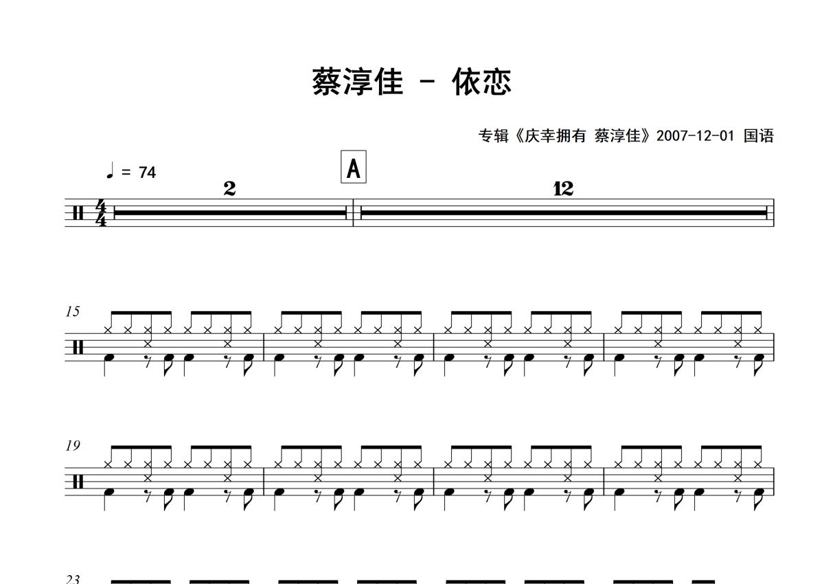 蔡淳佳《依恋》架子鼓谱 - 专辑版