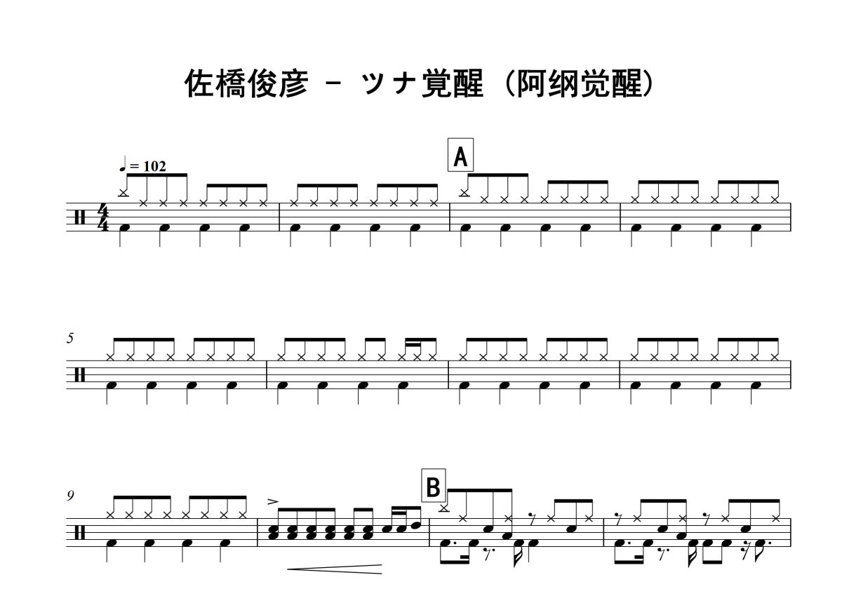 佐橋俊彦《ツナ覚醒 (阿纲觉醒)》架子鼓谱