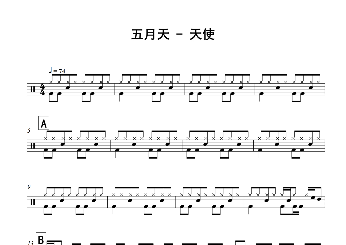 《天使》是五月天演唱的一首歌曲,这份架子鼓谱共有三张高清图谱,图谱由 @举个例子 编配上传,图谱使用五线谱编配,使用这份天使架子鼓谱,你将能够轻松地敲打出这首五月天的天使,快来尝试吧。
