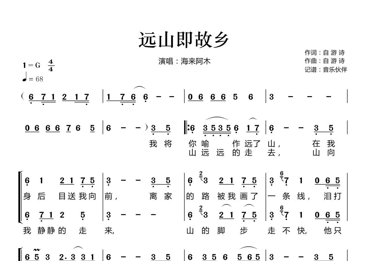 《远山即故乡》是海来阿木演唱的一首歌曲,这份简谱共有两张高清图谱,图谱由 @音乐伙伴 编配上传。