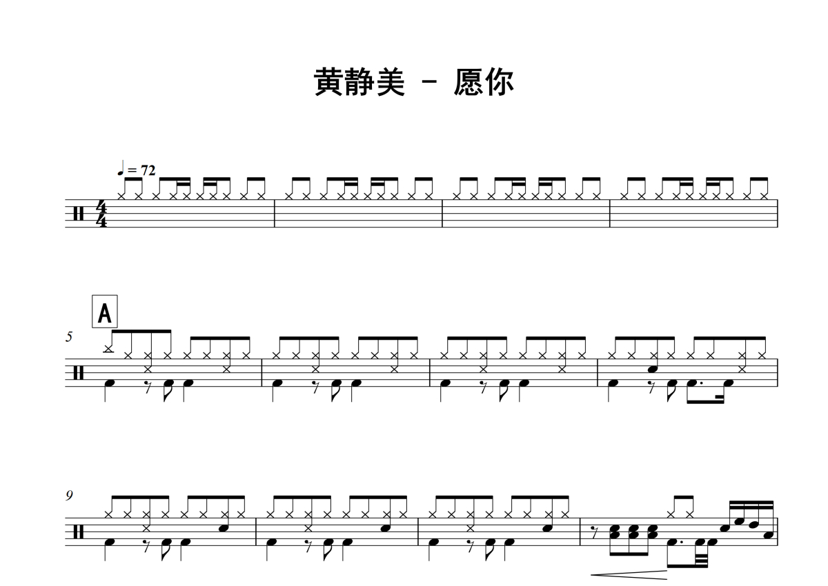 黄静美《愿你》架子鼓谱