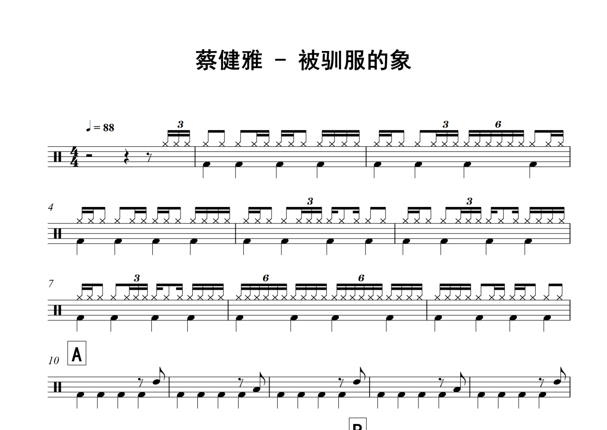 被驯服的象架子鼓谱 - 蔡健雅演唱