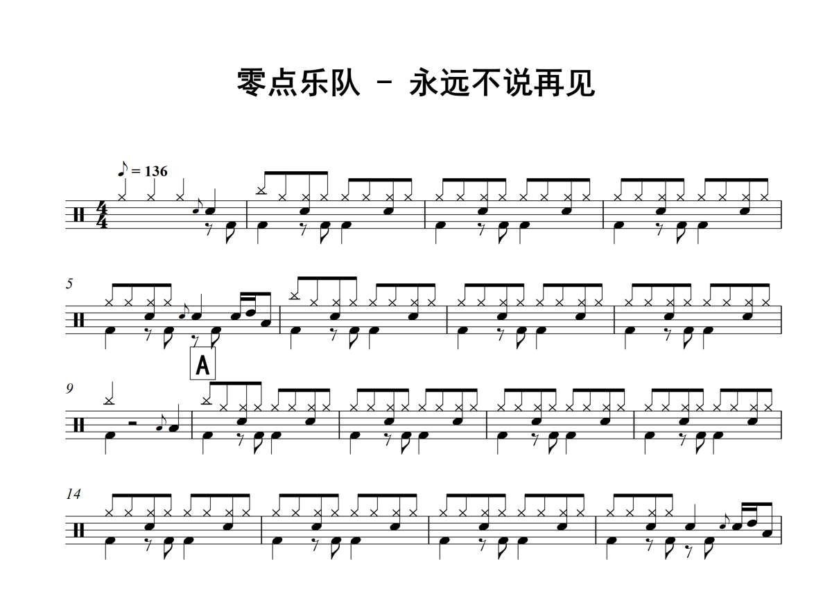 零点乐队《永远不说再见》架子鼓谱