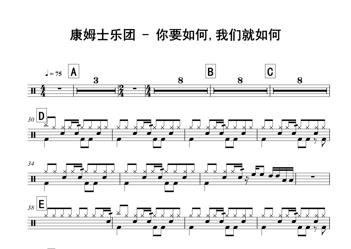 康姆士乐团《你要如何,我们就如何》架子鼓谱