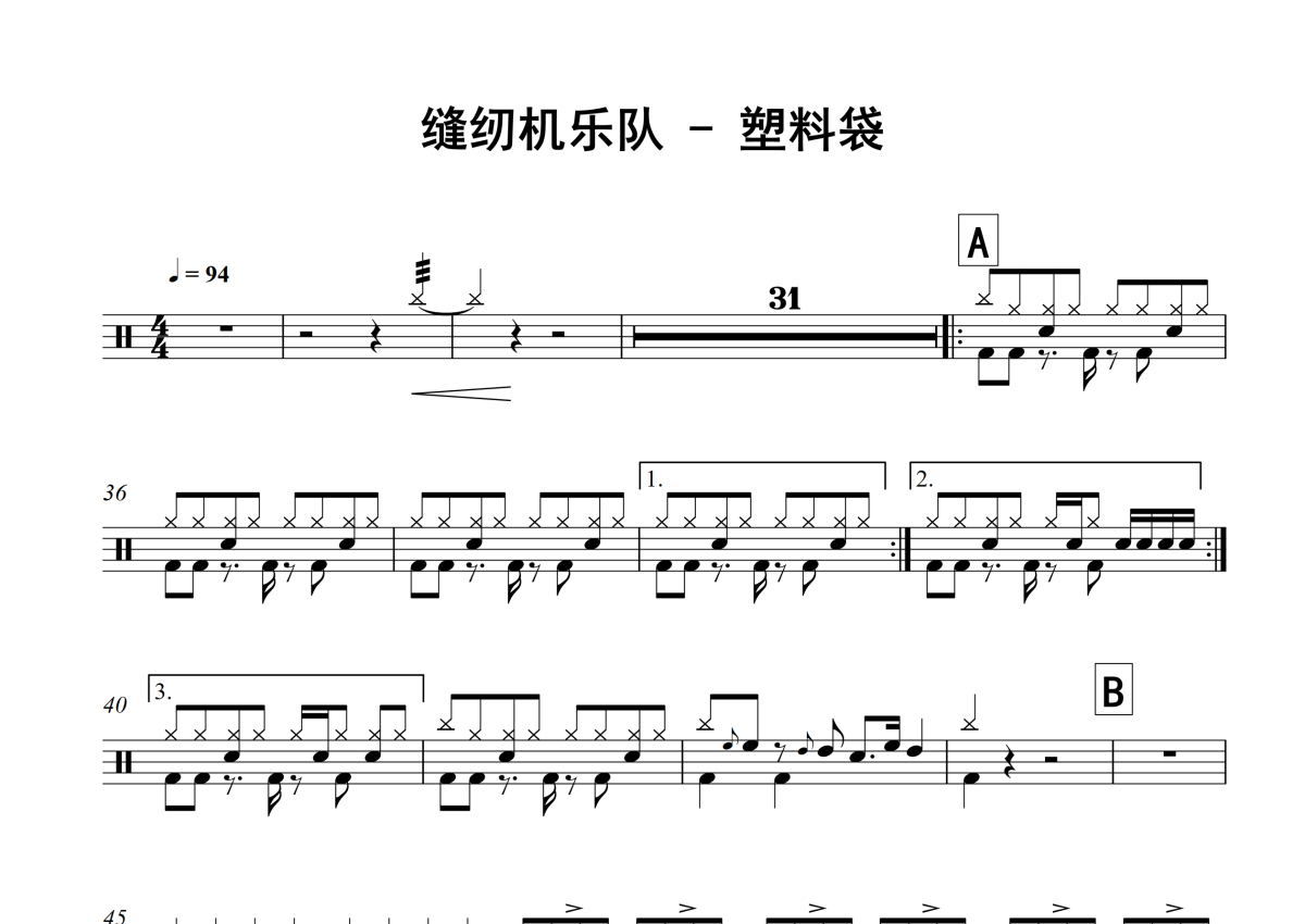 塑料袋架子鼓谱 - 缝纫机乐队演唱