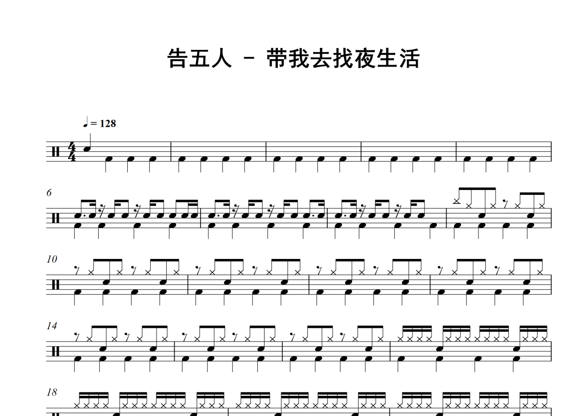 告五人《带我去找夜生活》架子鼓谱