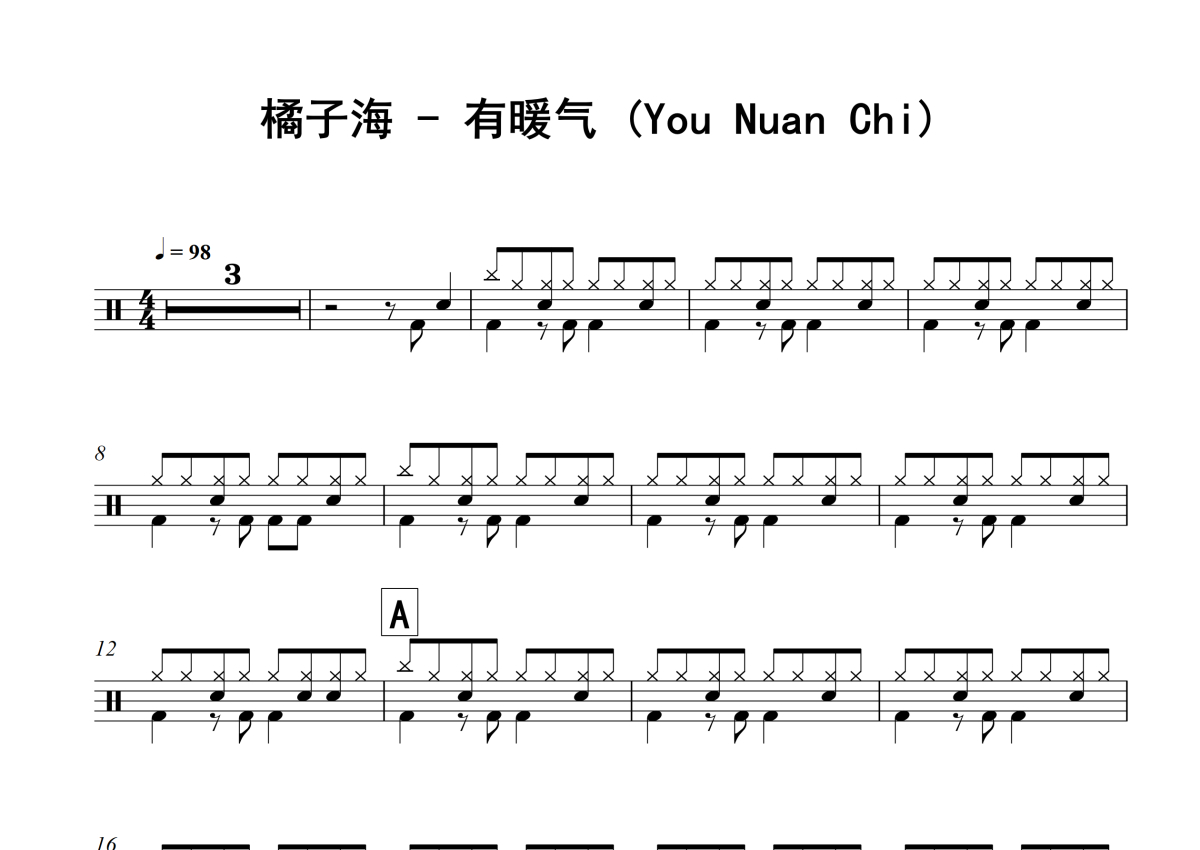 橘子海《有暖气 (You Nuan Chi)》架子鼓谱