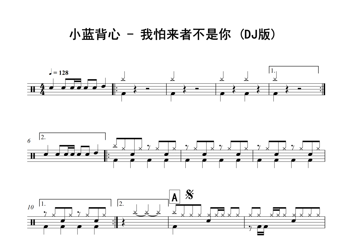 小蓝背心《我怕来者不是你 (DJ版)》架子鼓谱