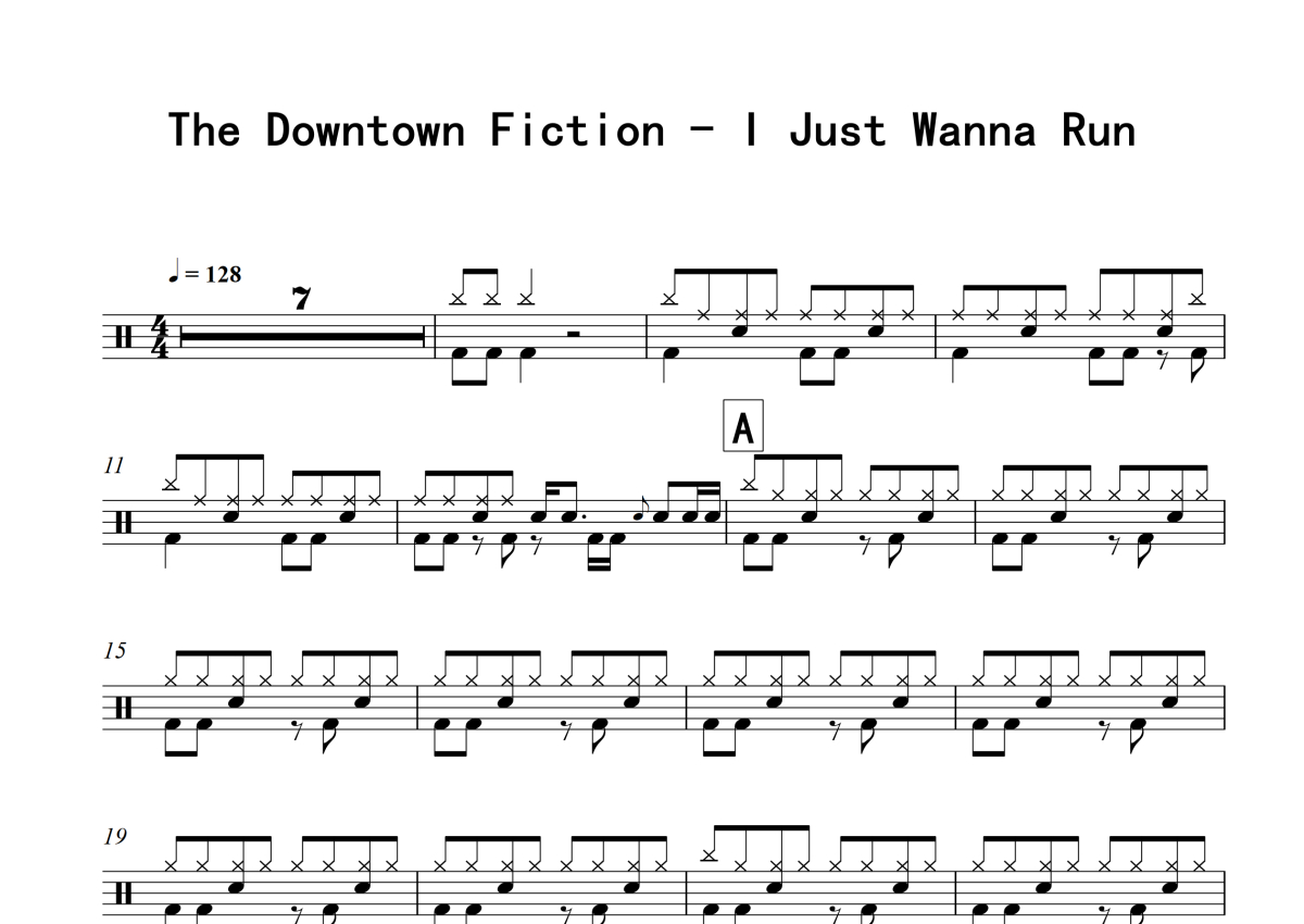 The Downtown Fiction《I Just Wanna Run》架子鼓谱