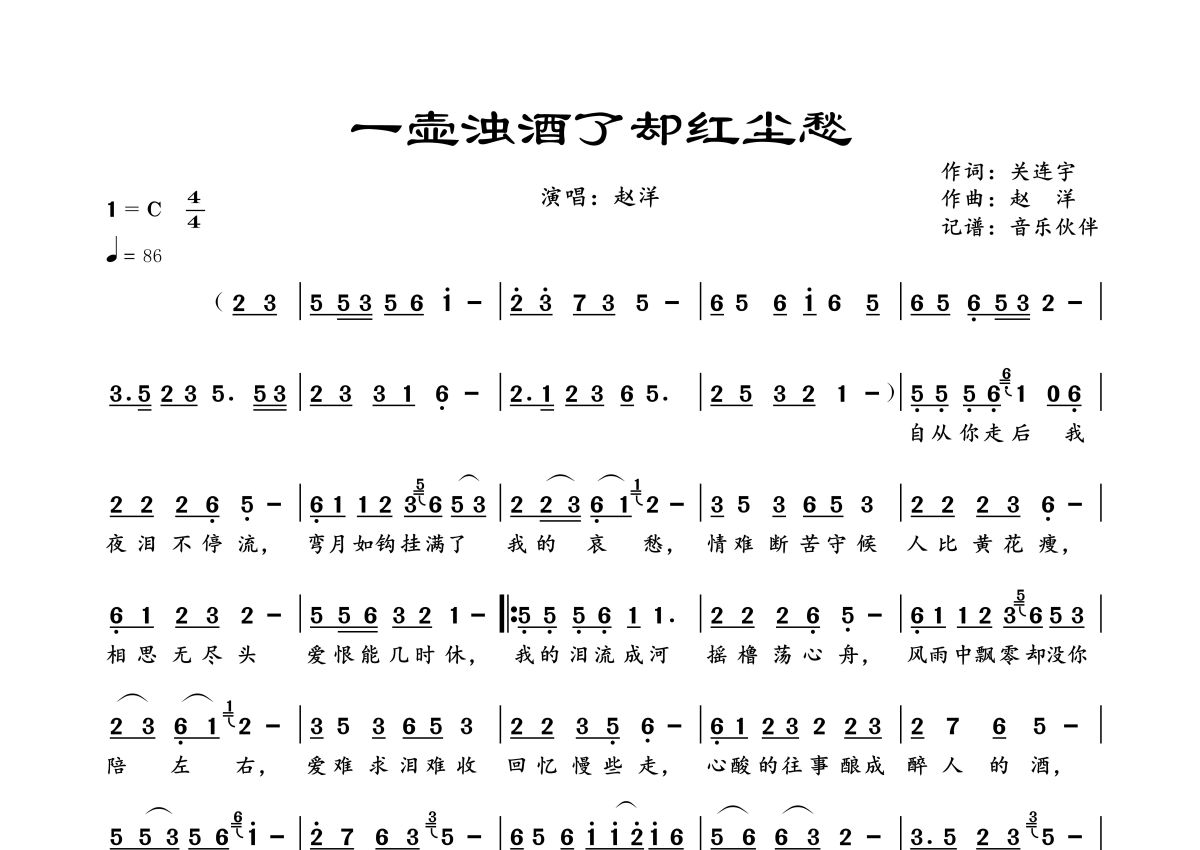 一壶浊酒了却红尘愁简谱 - 赵洋演唱