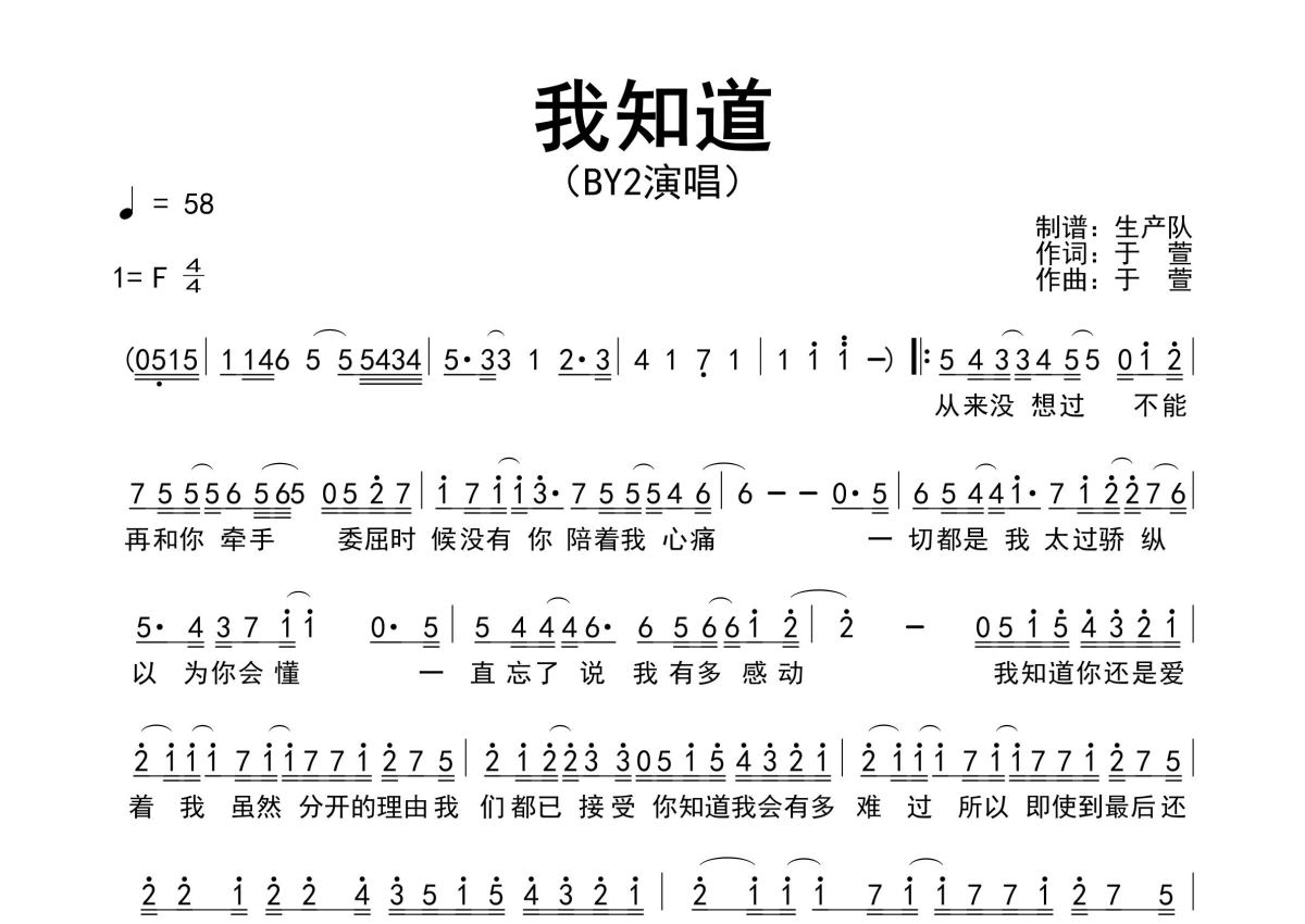 By2《我知道》简谱 - 原版简谱