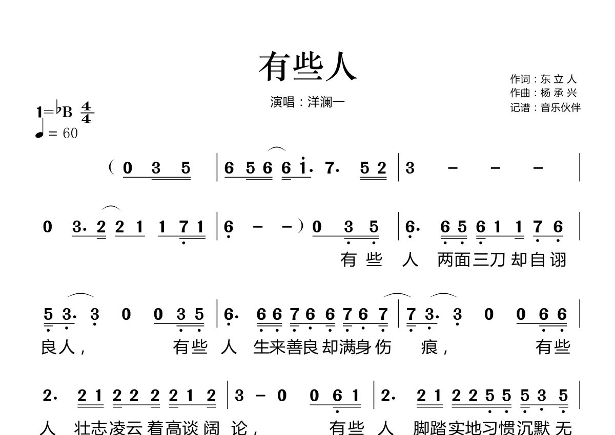 《有些人》是洋澜一演唱的一首歌曲,这份简谱共有两张高清图谱,图谱由 @音乐伙伴 编配上传。