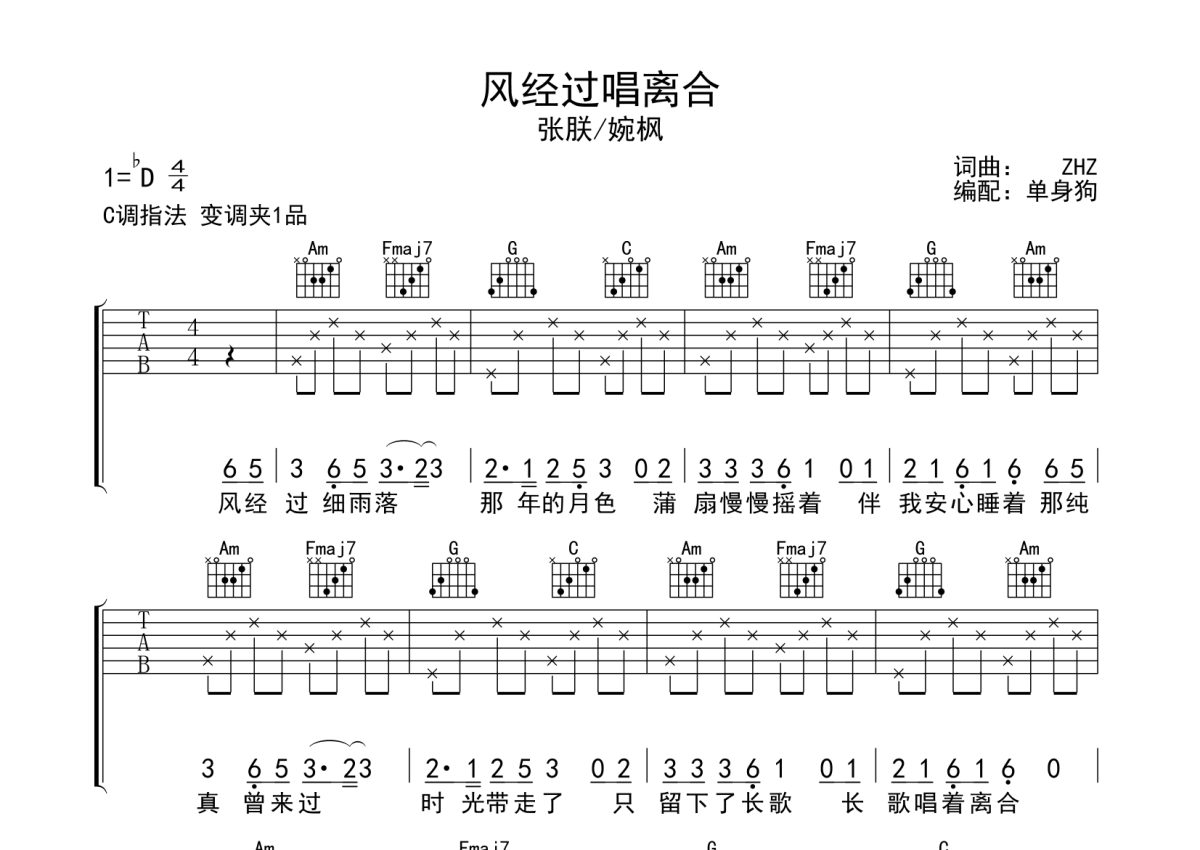 《风经过唱离合》吉他谱 - 婉枫 /张朕 - C调弹唱六线谱