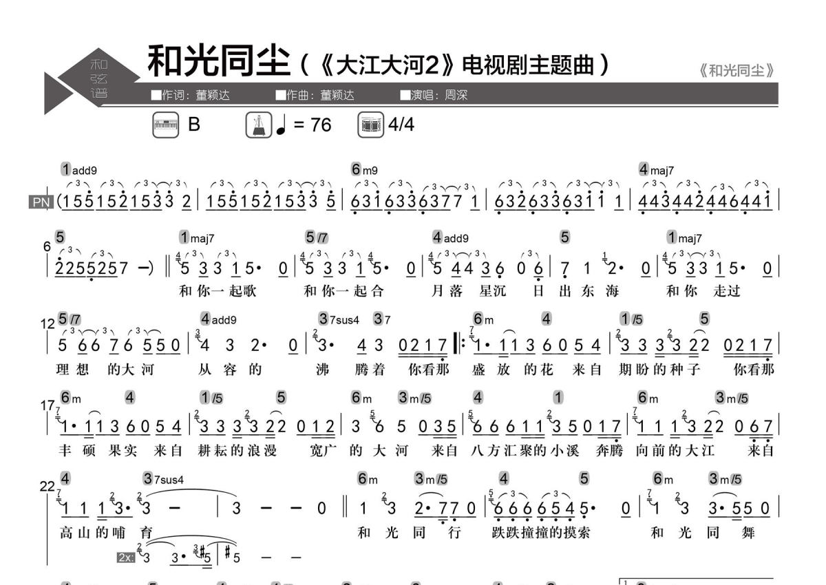 周深《和光同尘》简谱 - 数字级数和弦谱