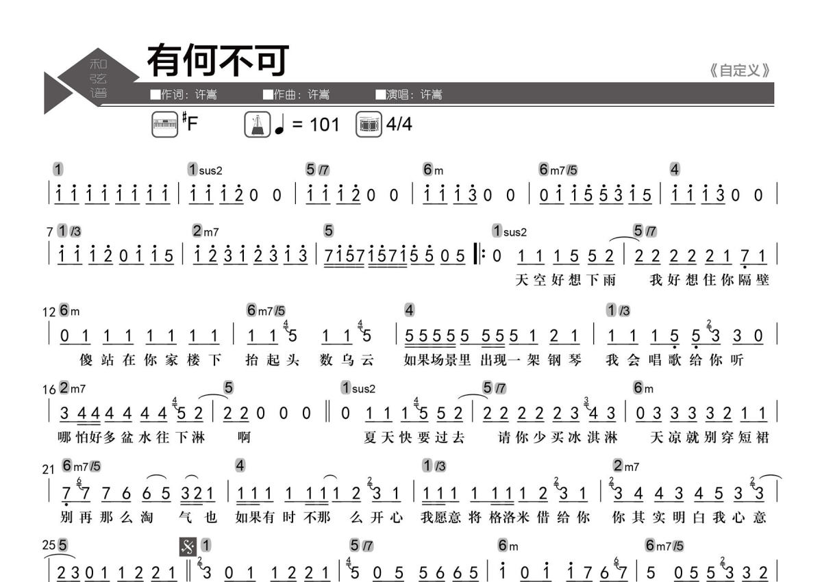 许嵩《有何不可》简谱 - 数字级数和弦谱
