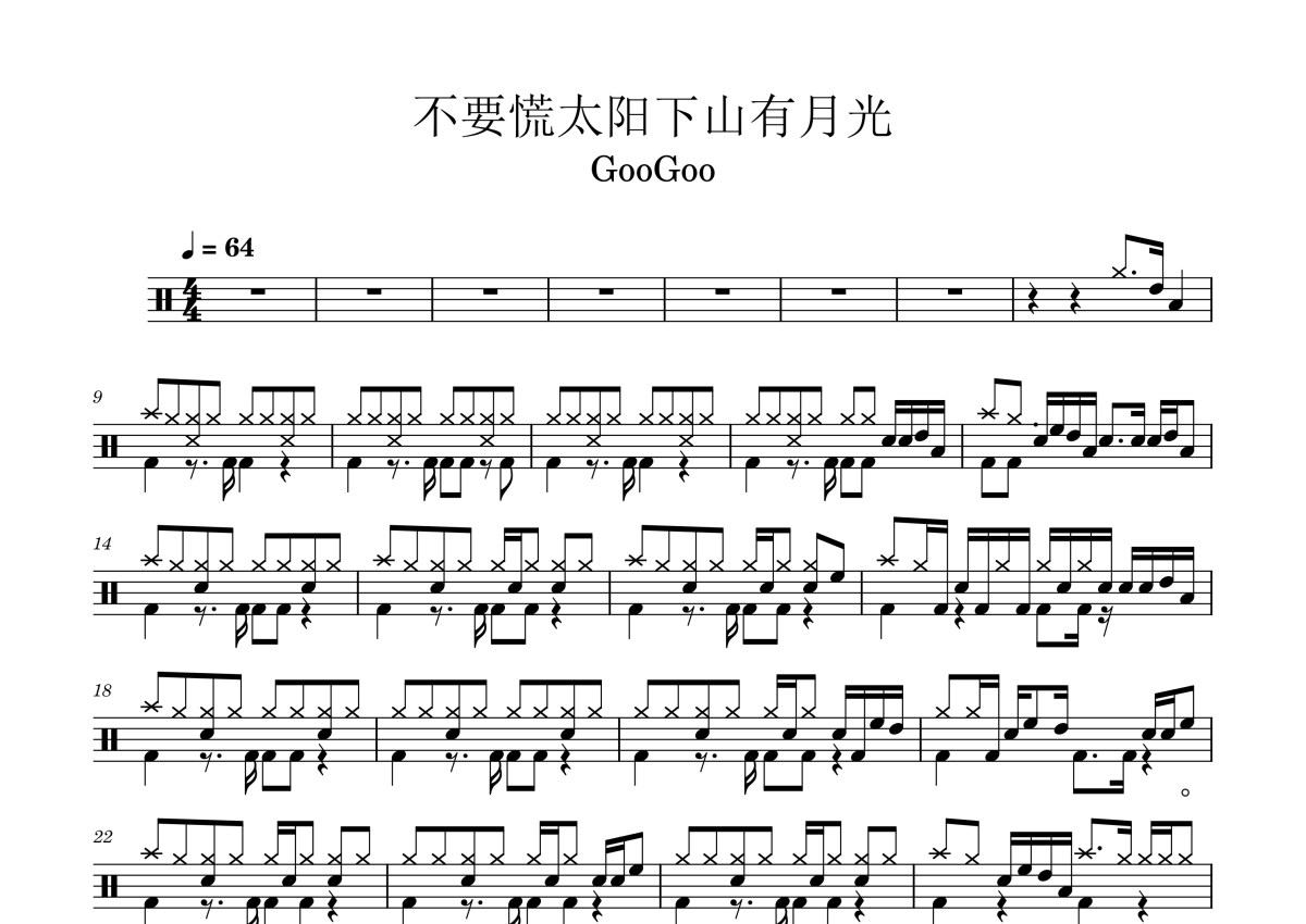 GooGoo《不要慌太阳下山有月光》架子鼓谱
