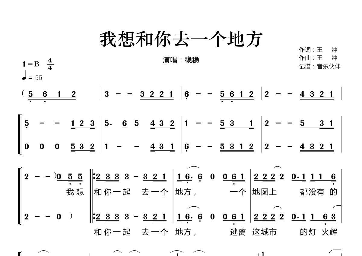 我想和你去一个地方简谱 - 稳稳演唱