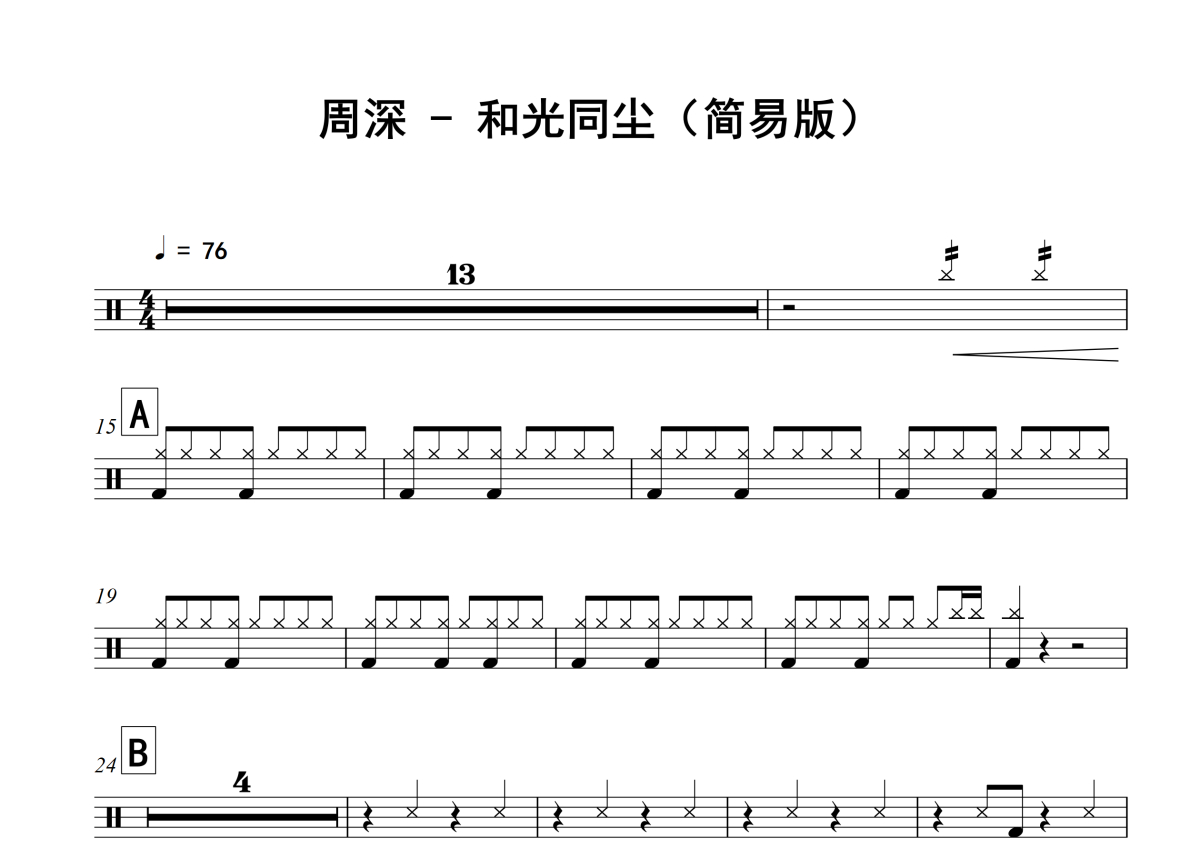 周深《和光同尘》架子鼓谱 - 简易版