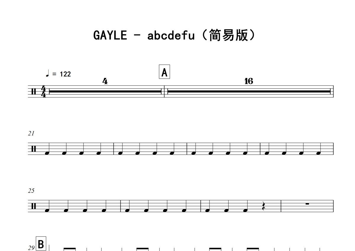 GAYLE《abcdefu》架子鼓谱 - 简易版