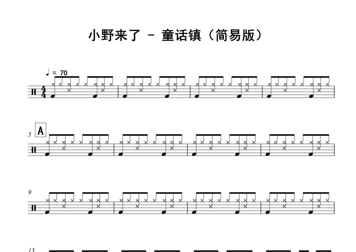 小野来了《童话镇》架子鼓谱 - 简易版