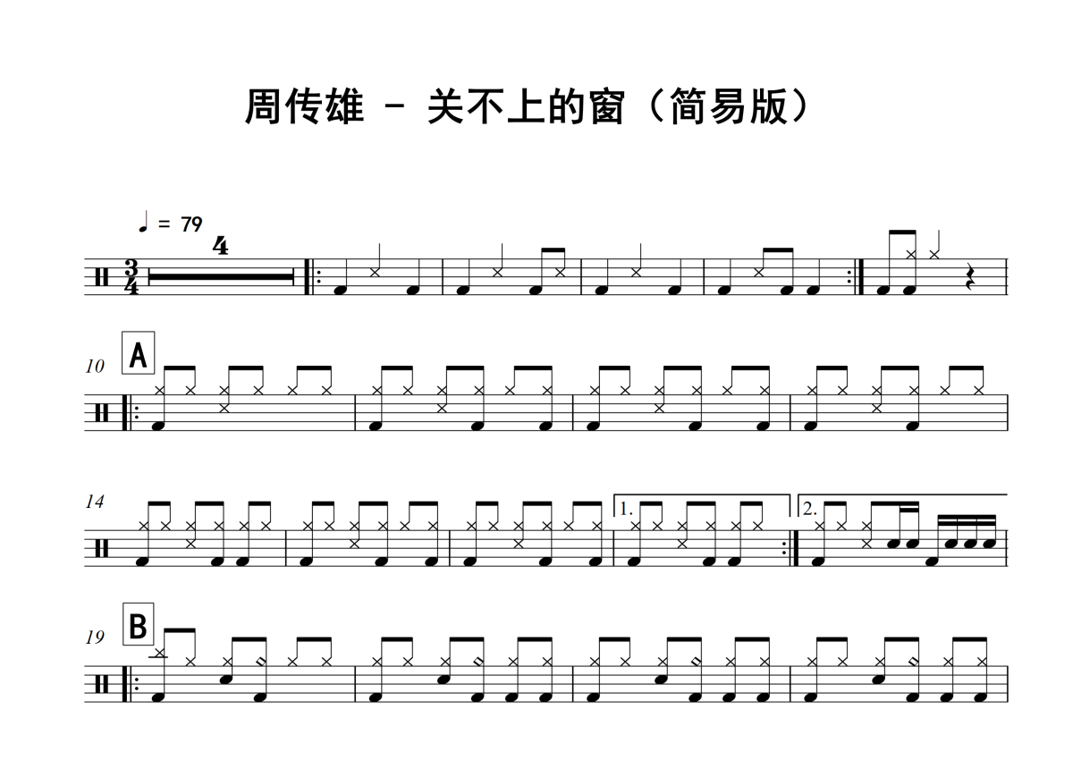 周传雄《关不上的窗》架子鼓谱 - 简易版