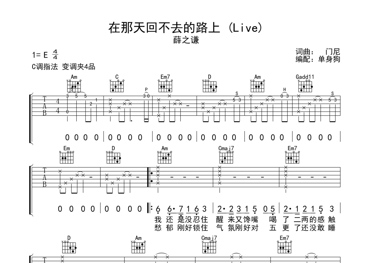 薛之谦《在那天回不去的路上 (Live)》吉他谱 - C调弹唱六线谱