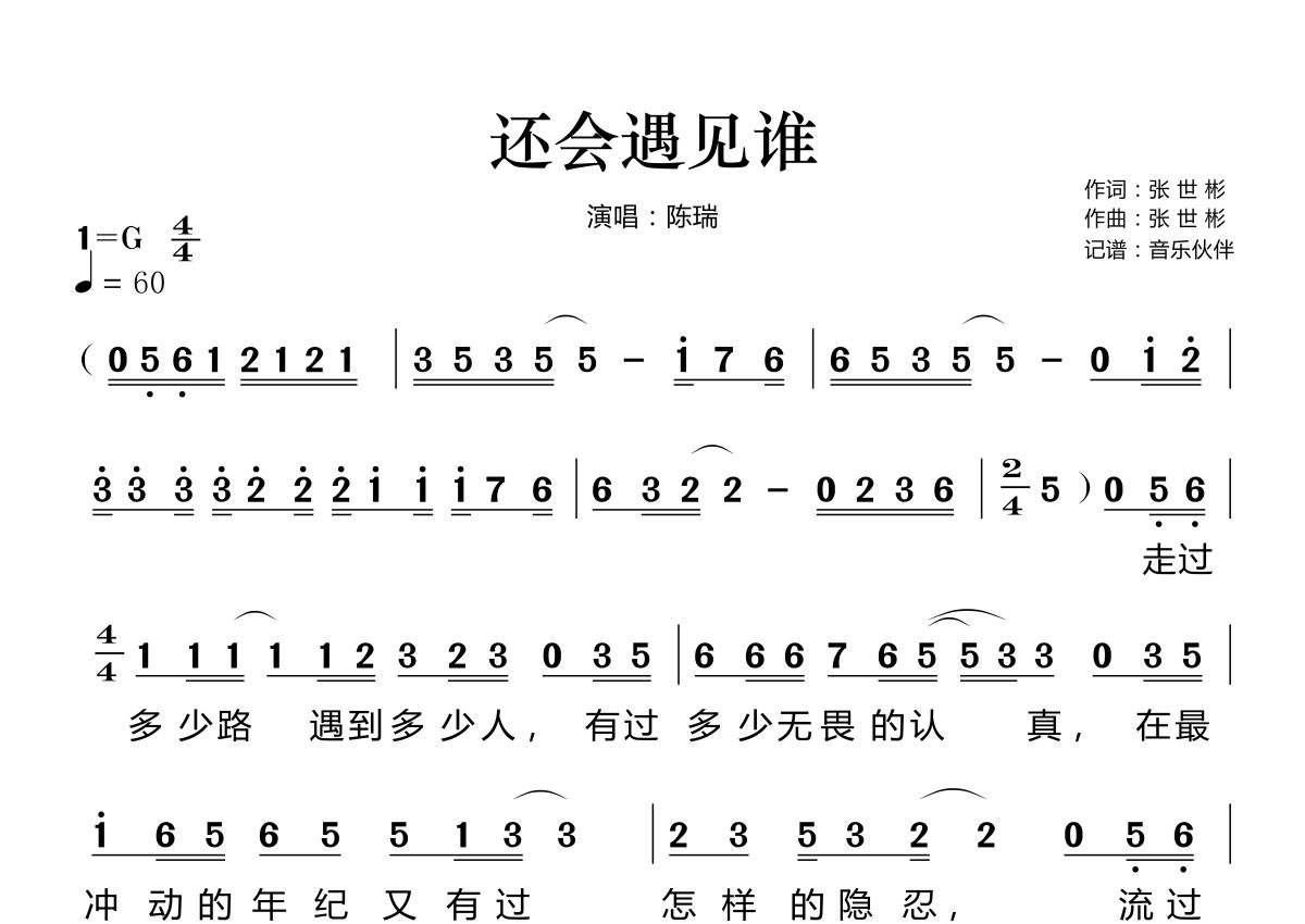 还会遇见谁简谱 - 陈瑞演唱