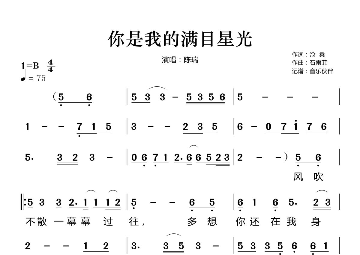 你是我的满目星光简谱 - 陈瑞演唱