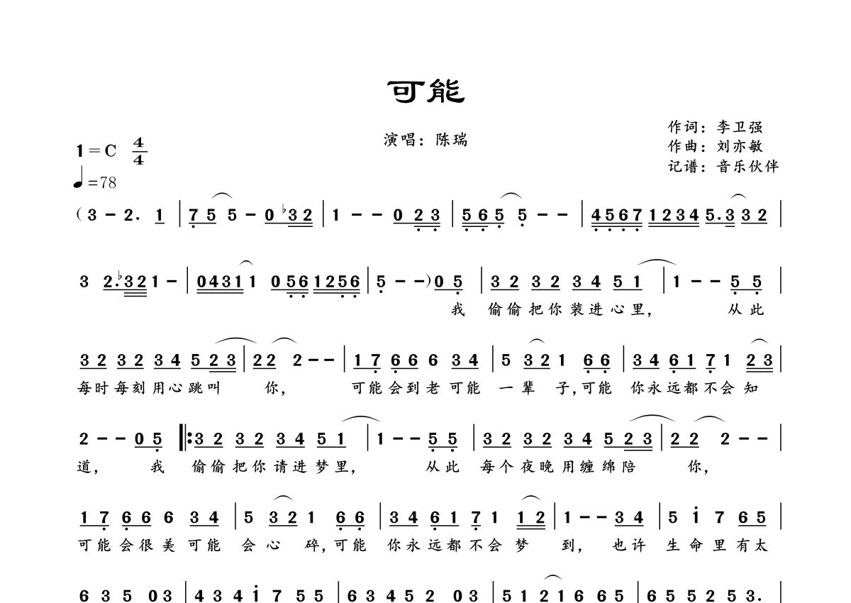 可能简谱 - 陈瑞演唱
