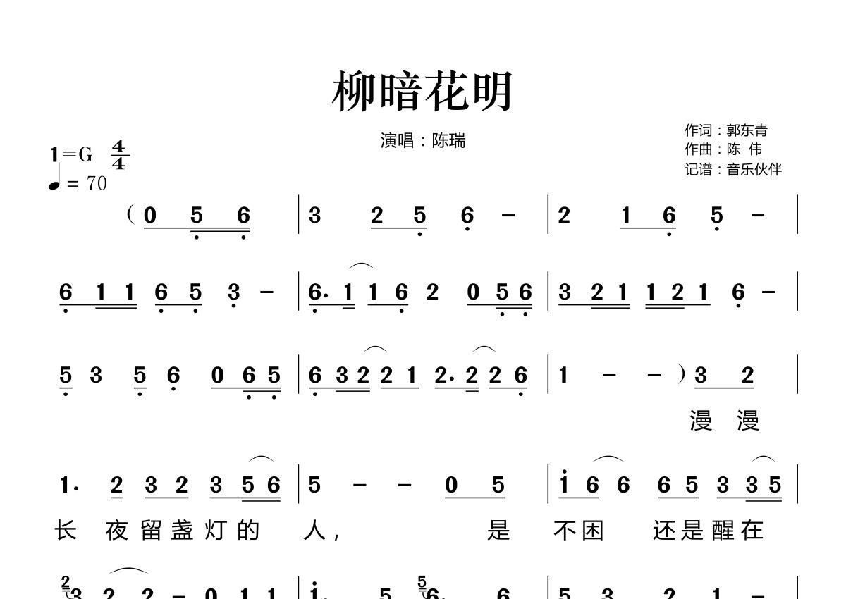 《柳暗花明》是陈瑞演唱的一首歌曲,这份简谱共有两张高清图谱,图谱由 @音乐伙伴 编配上传。