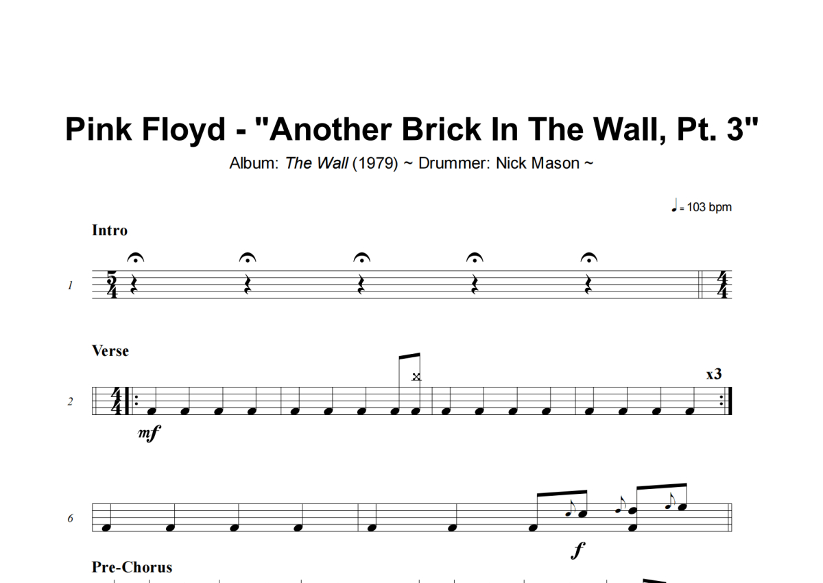 Another Brick In The Wall, Pt. 3架子鼓谱 - Pink Floyd演唱