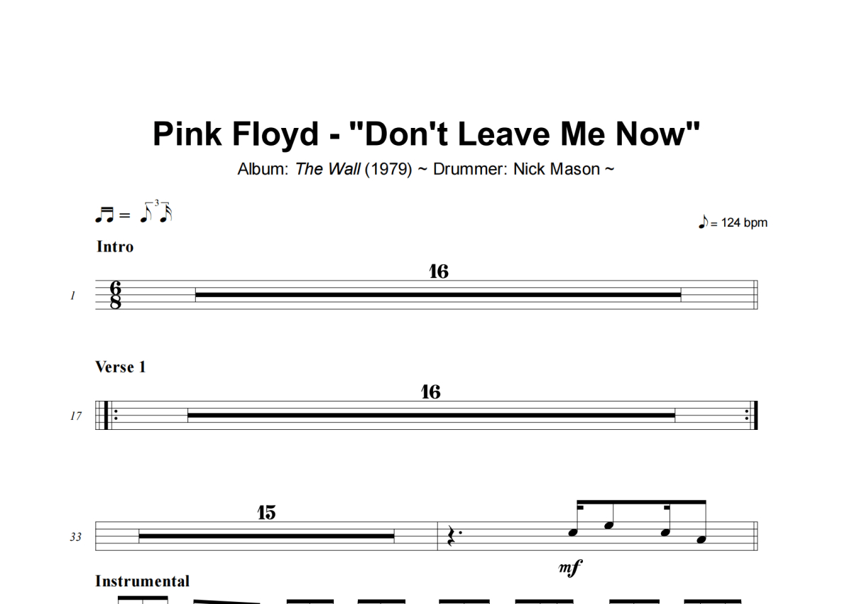 Don't Leave Me Now架子鼓谱 - Pink Floyd演唱