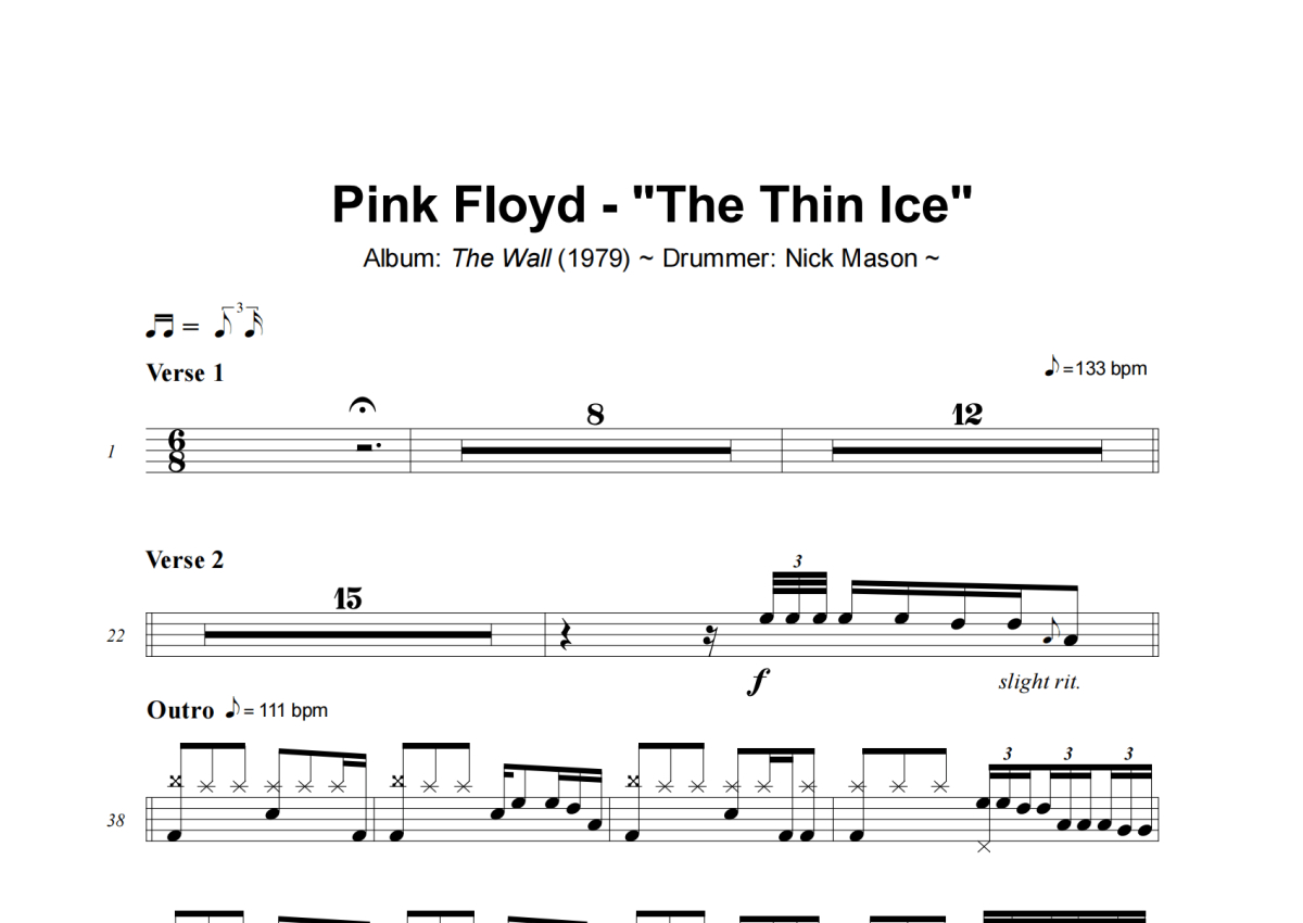 The Thin Ice架子鼓谱 - Pink Floyd演唱