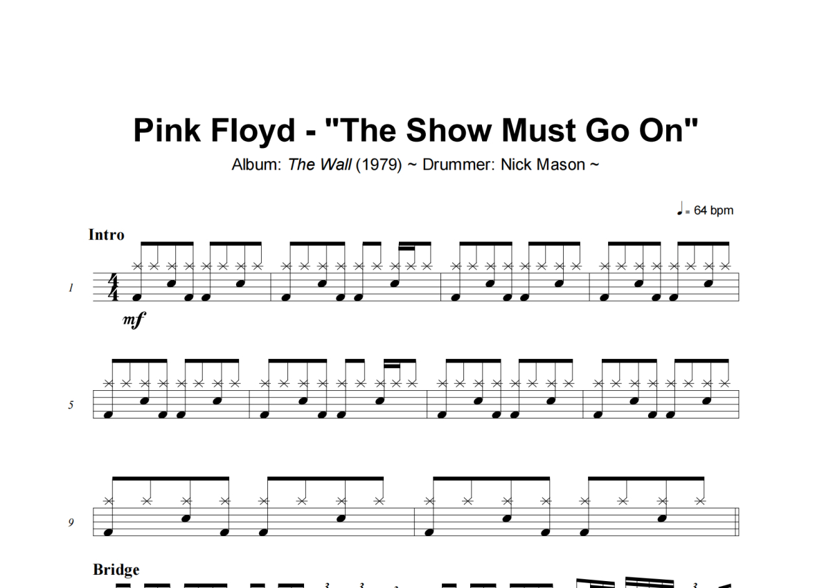The Show Must Go On架子鼓谱 - Pink Floyd演唱